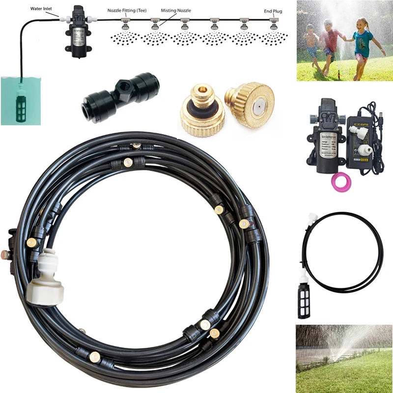 - Sistema de nebulización DIY, bomba de diafragma de 12V CC, 60W, máquina de niebla, pulverizador de agua para riego de jardín, Patio al aire libre, 10M