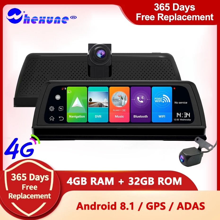 - WHEXUNE-Cámara de salpicadero DVR para coche, de 10 pulgadas dashcam, 4G, GPS, FHD, 1080P, Android 8,1, grabadora de vídeo para coche, lente Dual