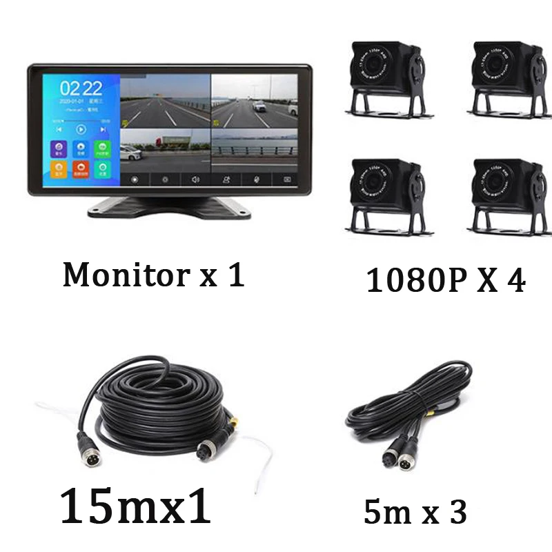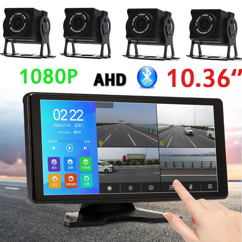 - Monitor DVR para coche, cámara de vigilancia AHD, visión nocturna a Color, 1080P, Kit de cámaras para vehículo, sistema de grabación de estacionamiento, 10,36 pulgadas