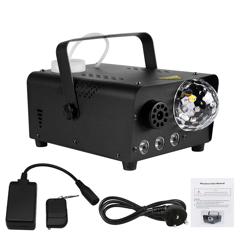 - Máquina de niebla portátil RGB de 600W con luces LED de 3 colores, Bola de luz con tanque de 250ml, máquina de humo de escenario con Control remoto para fiesta en interiores