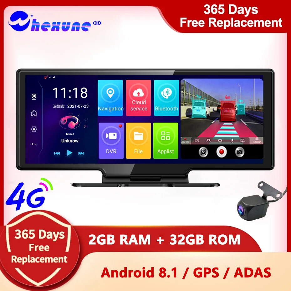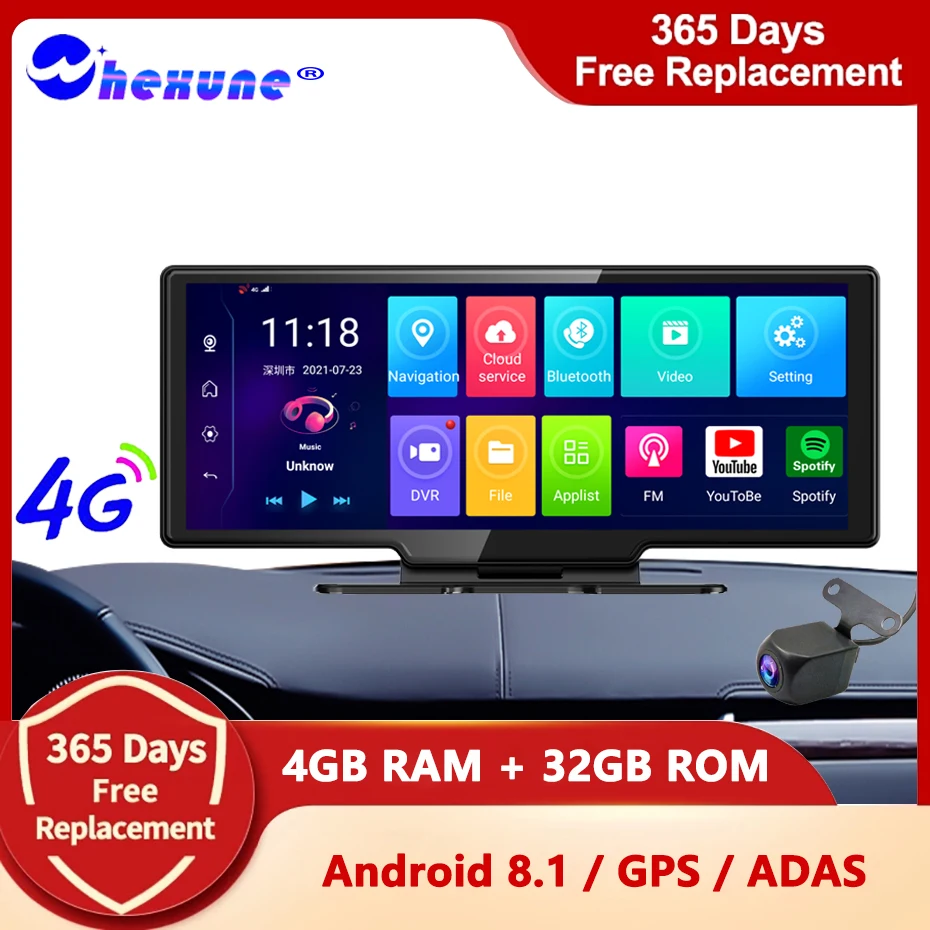 - Cámara de salpicadero DVR para coche, espejo retrovisor de 10,26 pulgadas, 4G, Android 8,1, GPS, WiFi, lente Dual 1080P, grabadora de vídeo automática, navegación ADAS