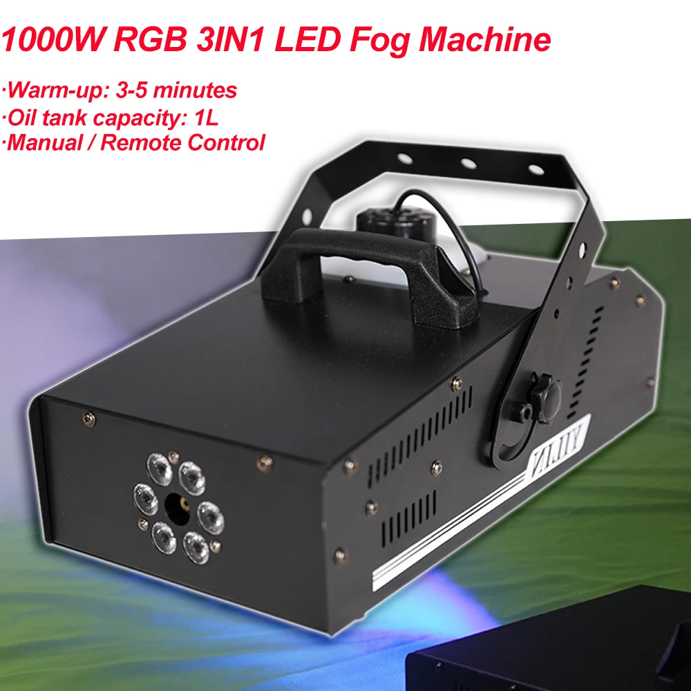- Máquina de humo remota RGB 3 en 1 para escenario, dispositivo de niebla de 1000W, LED, para DJ, fiestas, Navidad y bodas