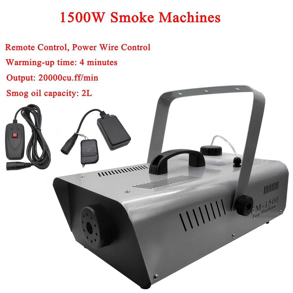 - Máquina de humo con control remoto o por cable, generador de humo de escenario para pulverización de aceite líquido, 1500W, venta al por mayor