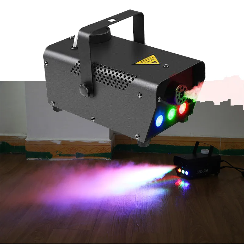 - Minimáquina de humo con Control remoto, dispositivo inalámbrico de 500W, LED RGB, para Dj, discoteca, fiesta, boda, escenario de Navidad, nebulizador LED