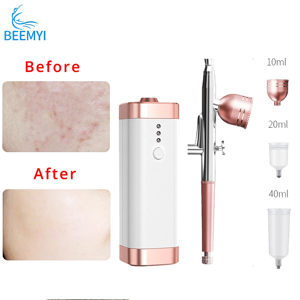 - Máquina inyectora de aerógrafo Facial de oxígeno en agua, compresor Nano, pulverizador de niebla, aparato de infusión de maquillaje, PISTOLA DE PULVERIZACIÓN artística para pastel de uñas