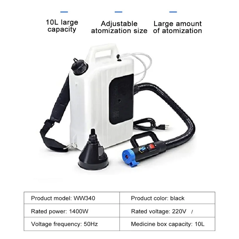 - PULVERIZADOR nebulizador ULV para mochila eléctrica de 10L y 1400W, máquina de nebulización en frío para jardín y pulverizador de drogas para mosquitos de 110/220V