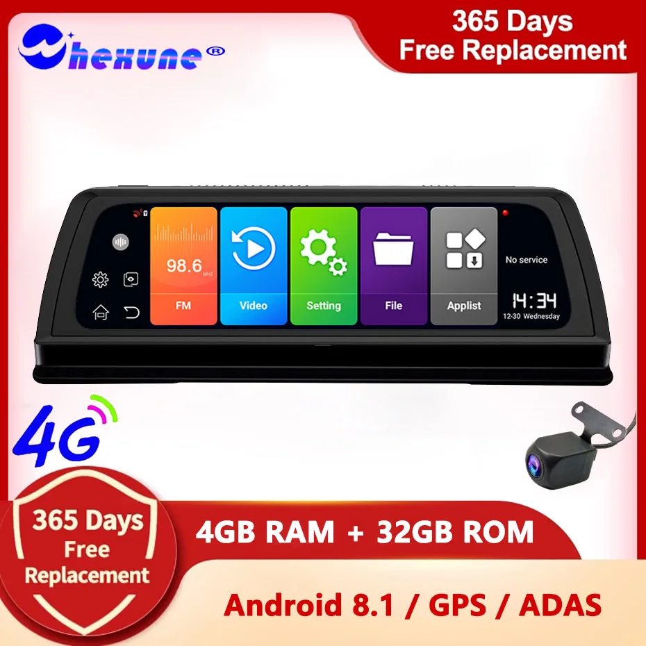 - WHEXUNE-Cámara de navegación GPS para coche, grabadora de vídeo con WiFi, monitoreo remoto en vivo, 4GB + 32GB, 10 pulgadas, IPS, 4G, Android 8,1, DVR, ADAS 1080P