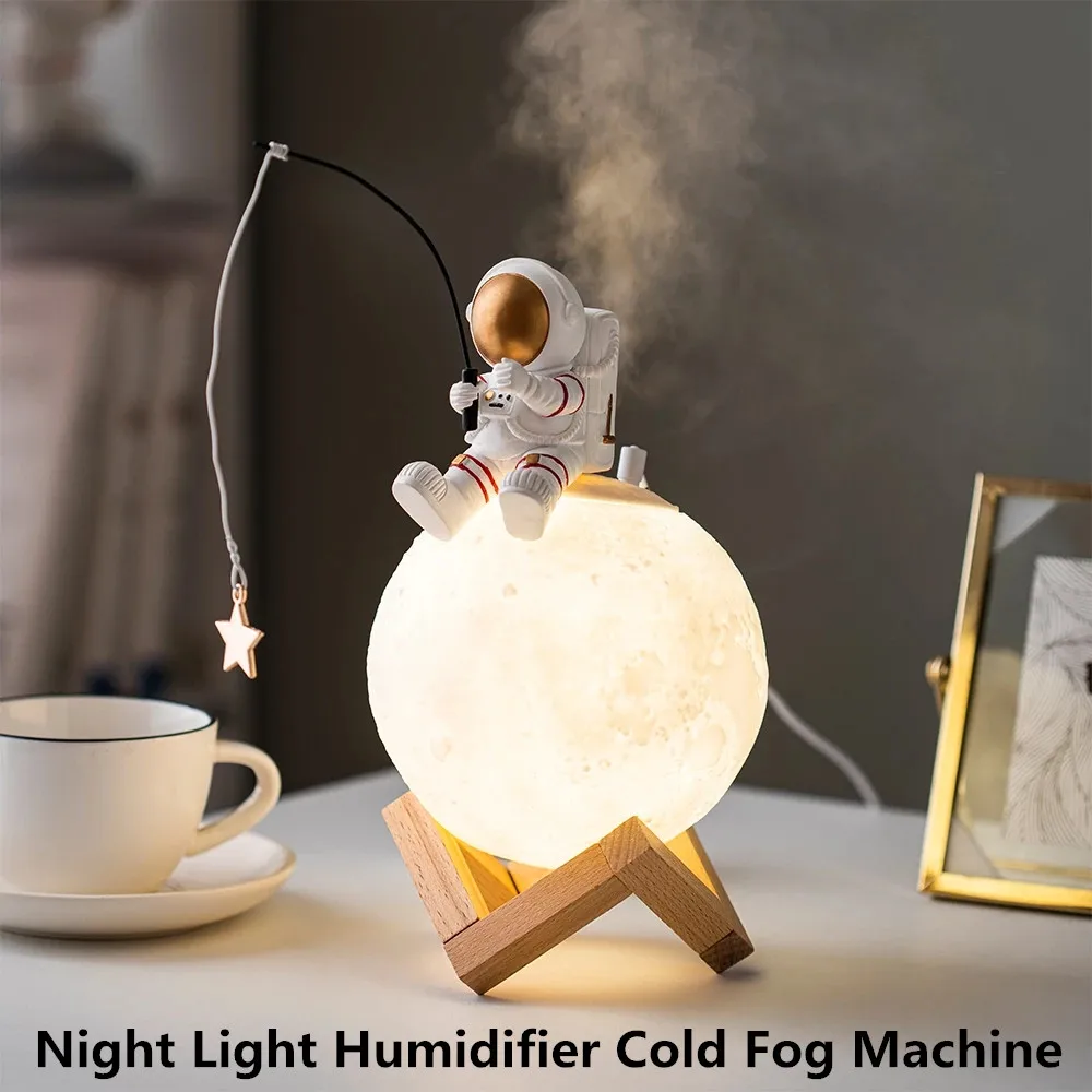 - Luz LED nocturna, figuritas de astronautas, humidificador de luz nocturna en miniatura, máquina de niebla fría, decoración del hogar, regalos de cumpleaños, resina, Space Man